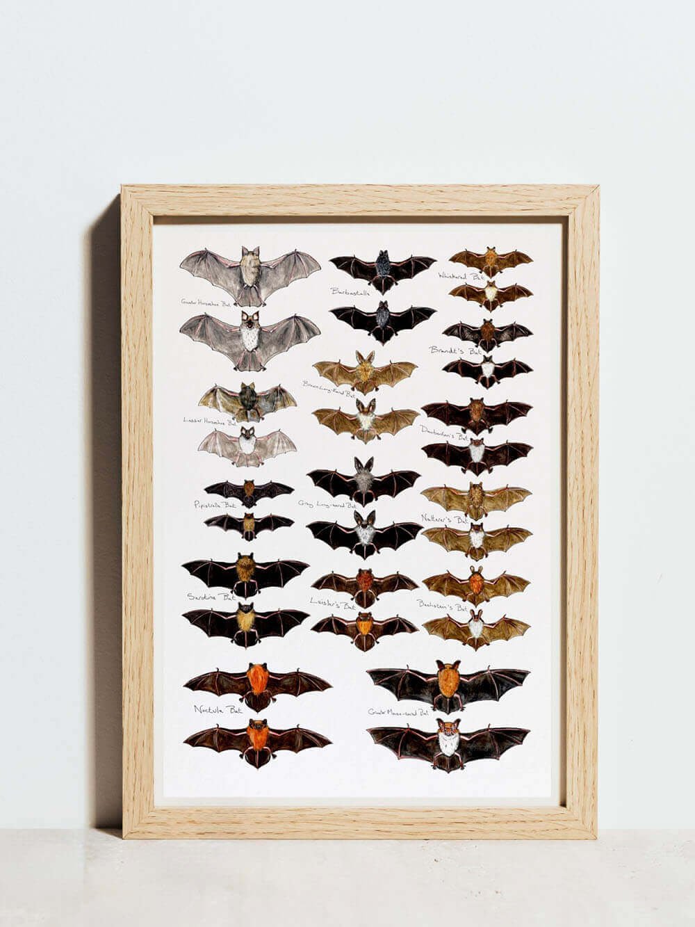 This A3 poster is from Ians watercolour field sketch style drawings and features the following bats –