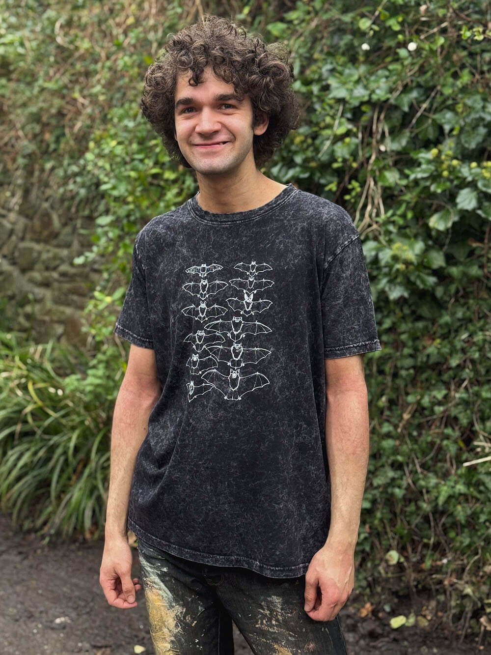We will hand print your T-shirt to order, here in Ceredigion. We only use water based inks, which adds to the softness of the Bats T-shirt and also means you can iron over the design.