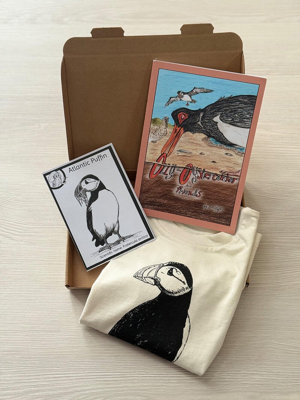 The Puffin T-shirt in the gift set is available in five sizes