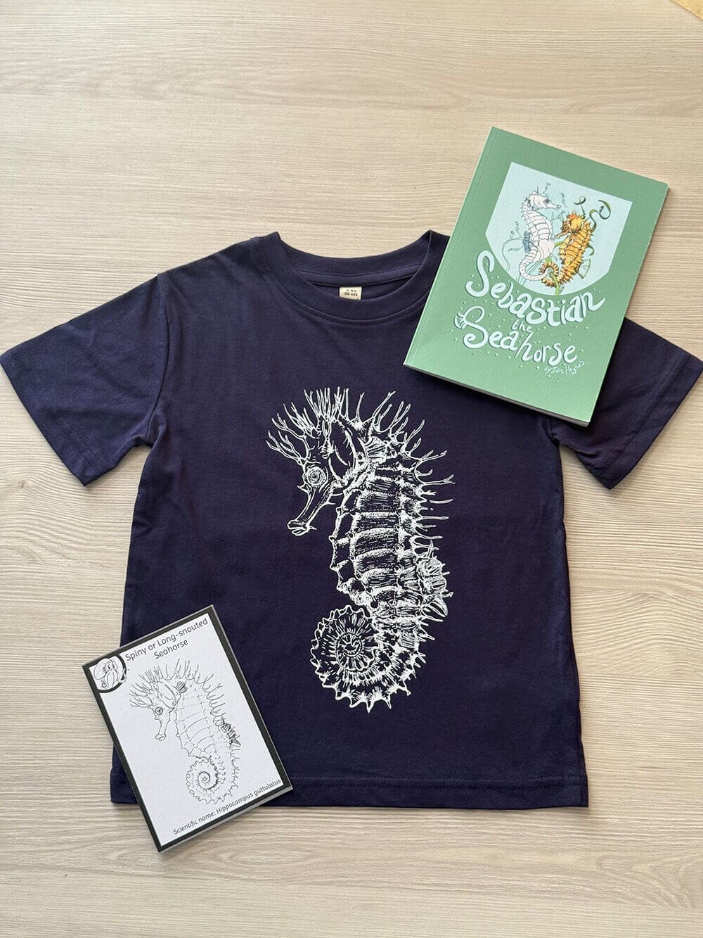 The gift set includes the Seahorse T-shirt, info Leaflet and Sebastian the Seahorse Nature Discovery Book. Who doesn’t love a seahorse? This set is a great introduction to seahorses and gives young seahorse lovers lots of fun facts.