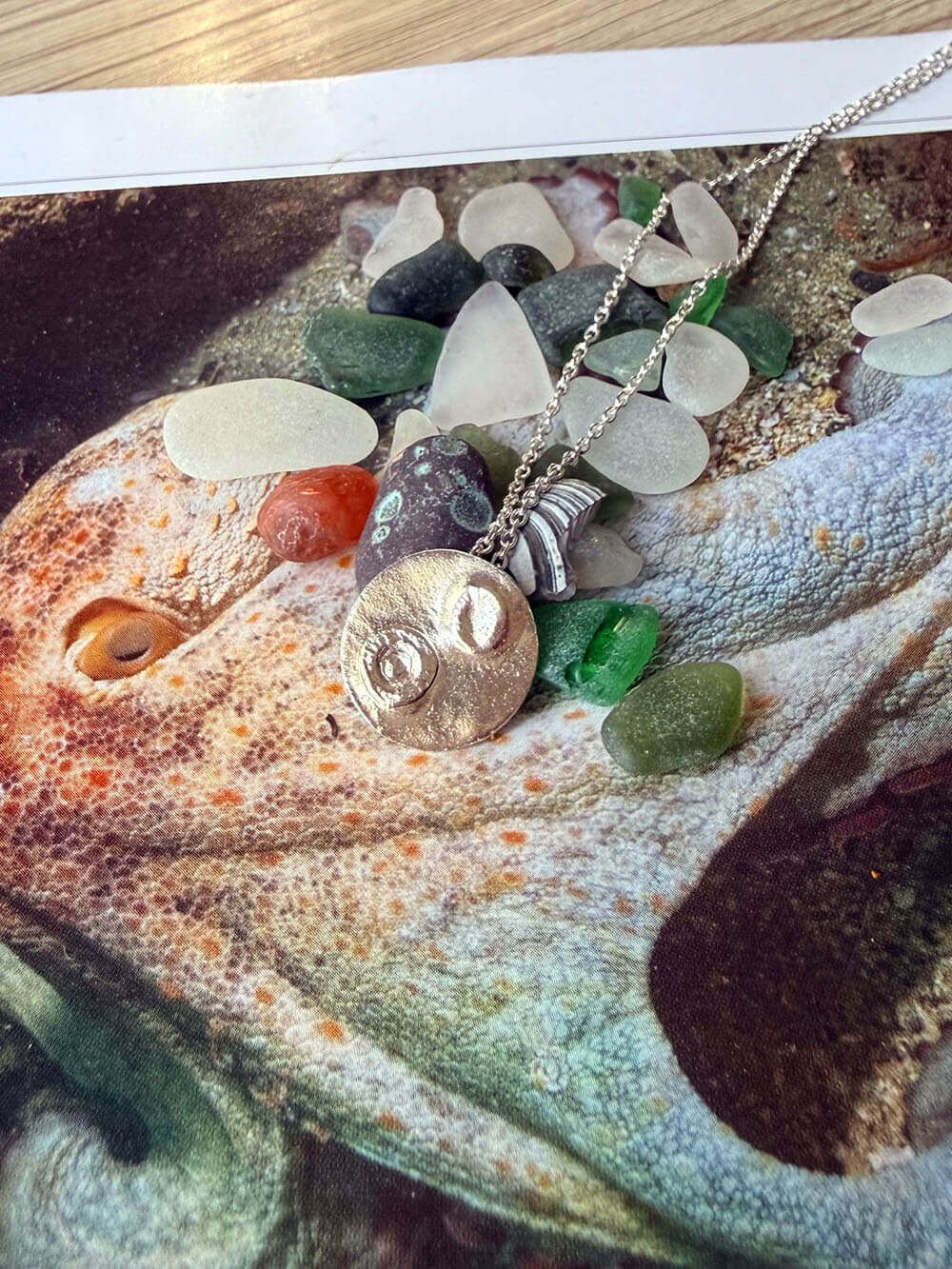 Most of the octopus we found washed up, we managed to rescue and return to the sea. Sadly one didn’t survive, and Ian took a cast of her, so that she lived on in art. Under supervision from Ian I made casts of the tentacles and suckers to use in my  jewellery making and these pieces are the result.