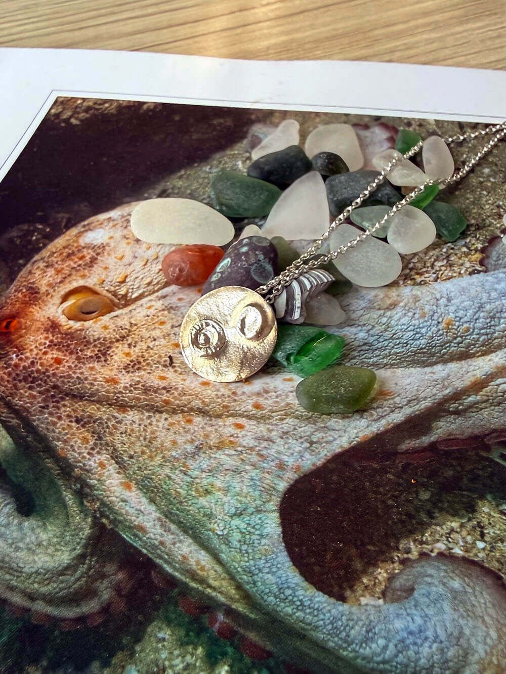 This curled octopus pendant is a one off, the pendant pictured is the one you’ll receive.